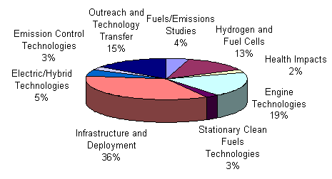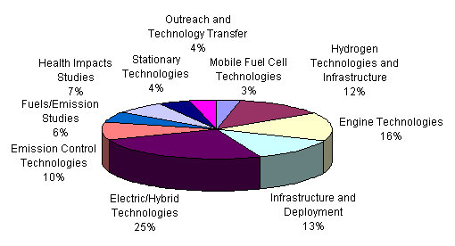 Figure 2: Projected Cost Distribution for Potential Projects in 2007 ($22 million) The proposed update is the result of a comprehensive planning and review process. This process has included consideration of the Draft 2007 AQMP control measures and coordination activities involving outside organizations. As part of this process, staff hosted two one-day retreats in September 2006 and January 2007 to solicit input from the Clean Fuels Advisory Group, the Technology Advancement Advisory Group, and other technical experts. During these retreats, the participants reviewed the current Technology Advancement projects and discussed near-term and long-term technologies as potential projects. These discussions, where appropriate, were fashioned into project areas and included in this year’s Plan Update. In addition, staff has initiated a series of day-long technology meetings (Technology Forums, http://www.aqmd.gov/tao/ConferencesWorkshops/techforum.htm) to help guide the overall research, development, demonstration, and deployment strategy for the Plan Update. Table 1 below lists the meetings which have been held to date. Table 1: Technology Forum and Roundtable Topics