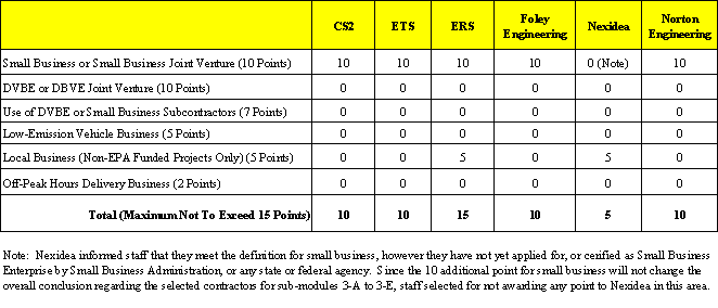 proposal. Additional points for small business, DVBE etc, not exceeding 15, were