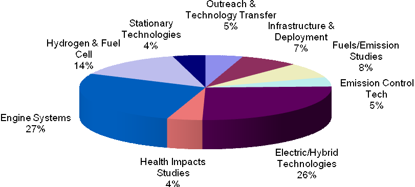Figure 1: Projected Funding Distribution for Potential Projects in 2011 ($16.6 million) The proposed update is the result of a comprehensive planning and review process. This process has included consideration of the 2007 AQMP control measures and coordination activities involving outside organizations. As part of this process, staff hosted two one-day retreats in February 2010 and August 2010 to solicit input from the Clean Fuels Advisory Group, the Technology Advancement Advisory Group, and other technical experts. During these retreats, the participants reviewed the current Technology Advancement projects and discussed near-term and long-term technologies as potential projects. These discussions, where appropriate, were fashioned into project areas and included in this year’s Plan Update. Additionally, staff attended meetings with CARB, CEC, the California Fuel Cell Partnership, the National Hydrogen Association and other entities to solicit and incorporate technical areas for potential leveraged funding. The major areas of focus are proposed in these areas: